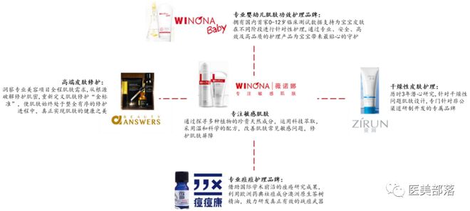 除此之外,其他子品牌还包括“痘痘康”专注于痘痘肌肤护理;“Beauty Answers”专注于医美术后的精准及强功效修护;以及“资润”专注于干燥性皮肤护理。